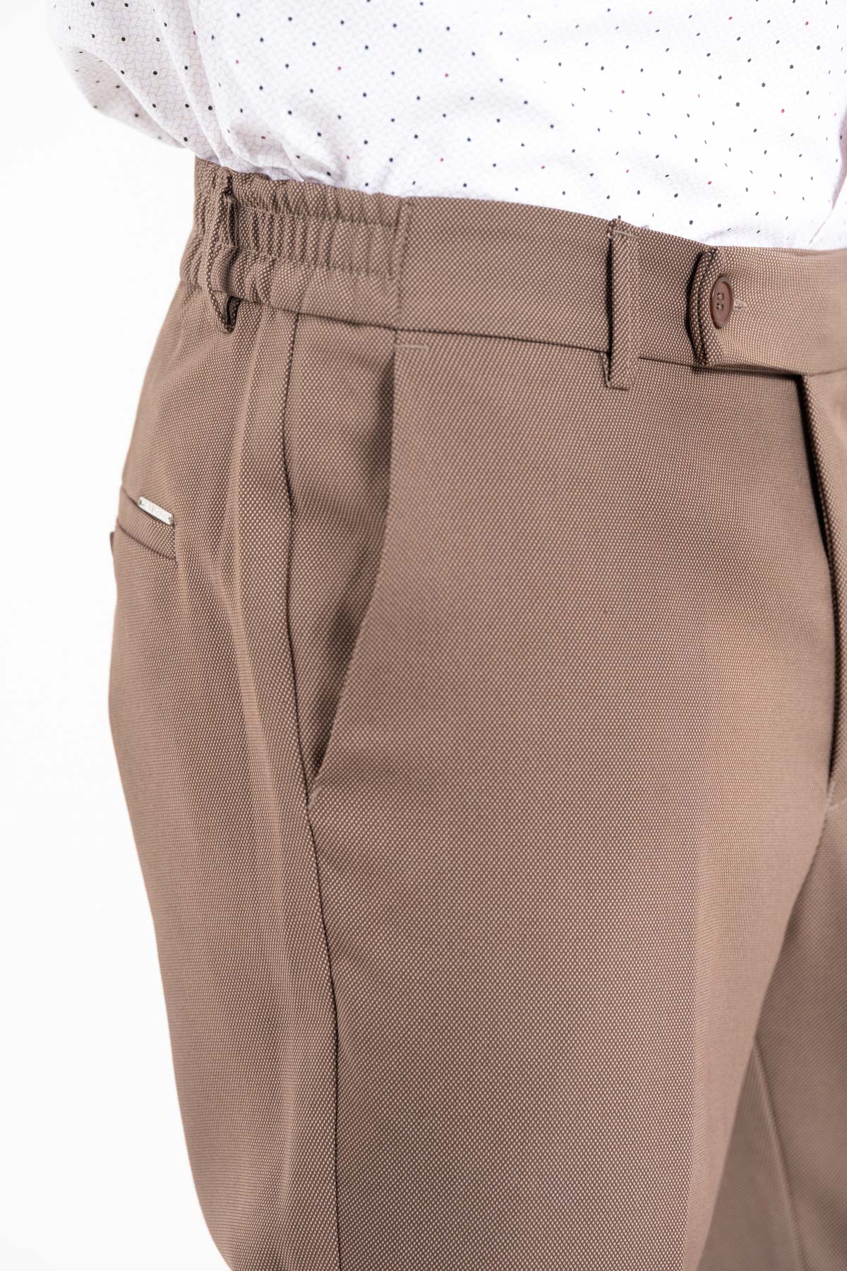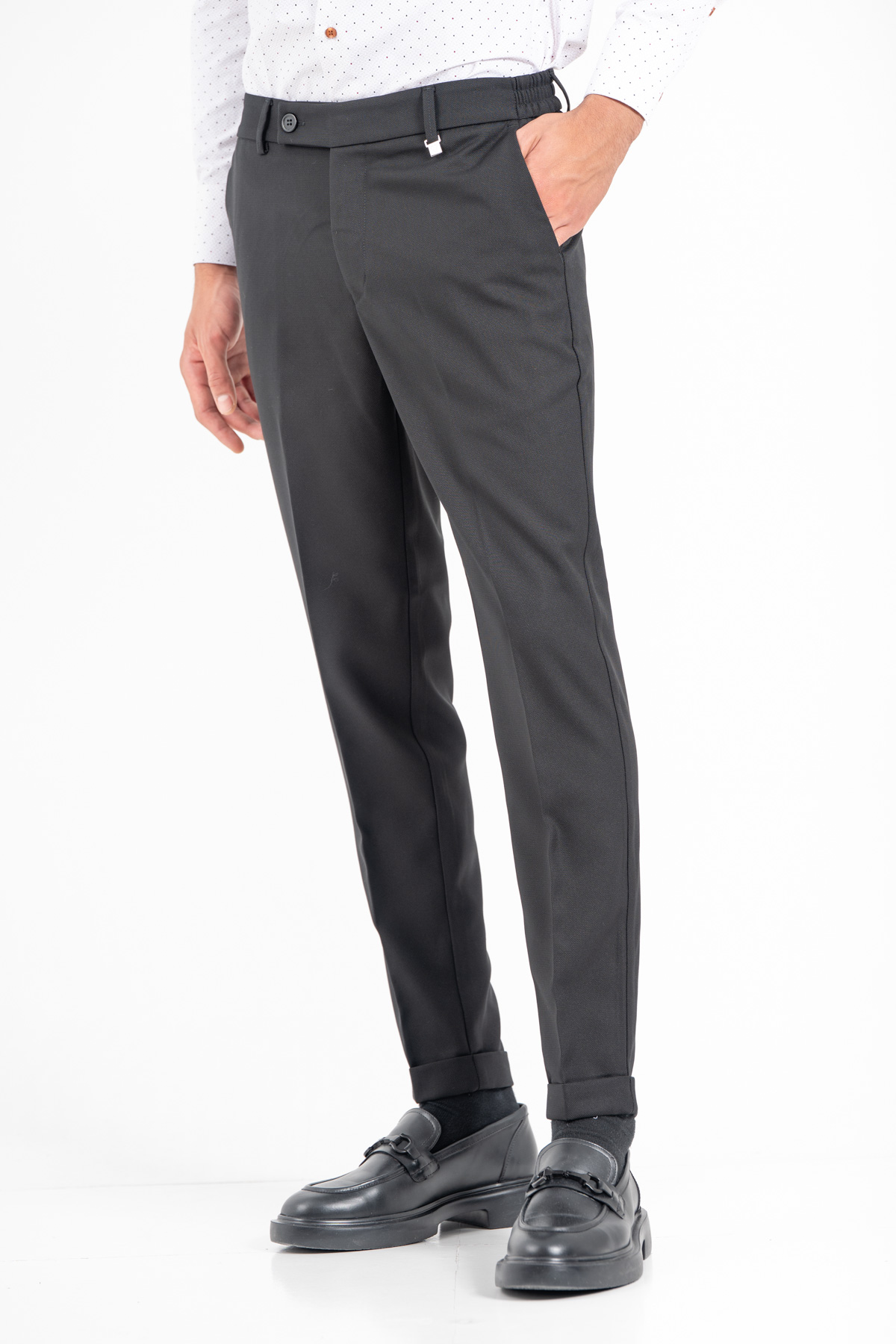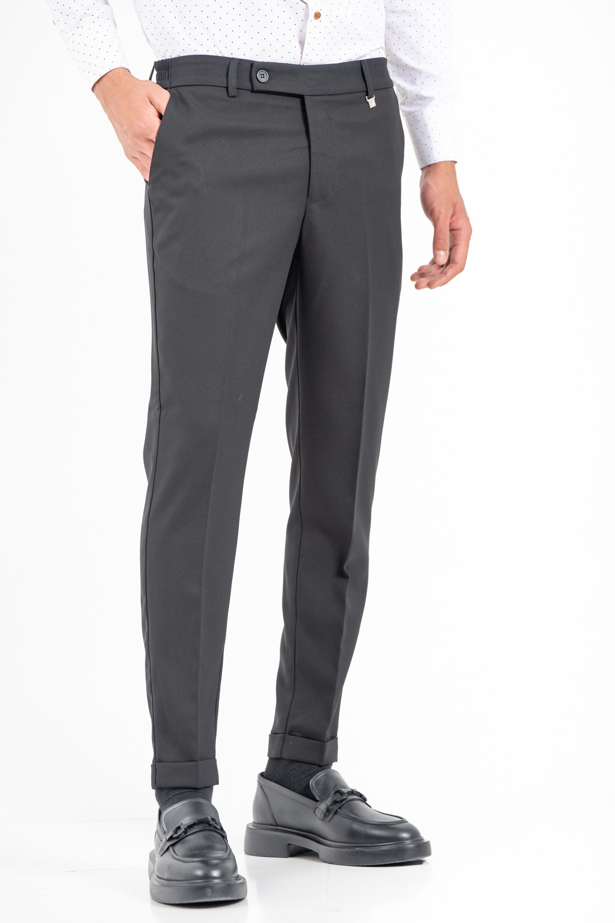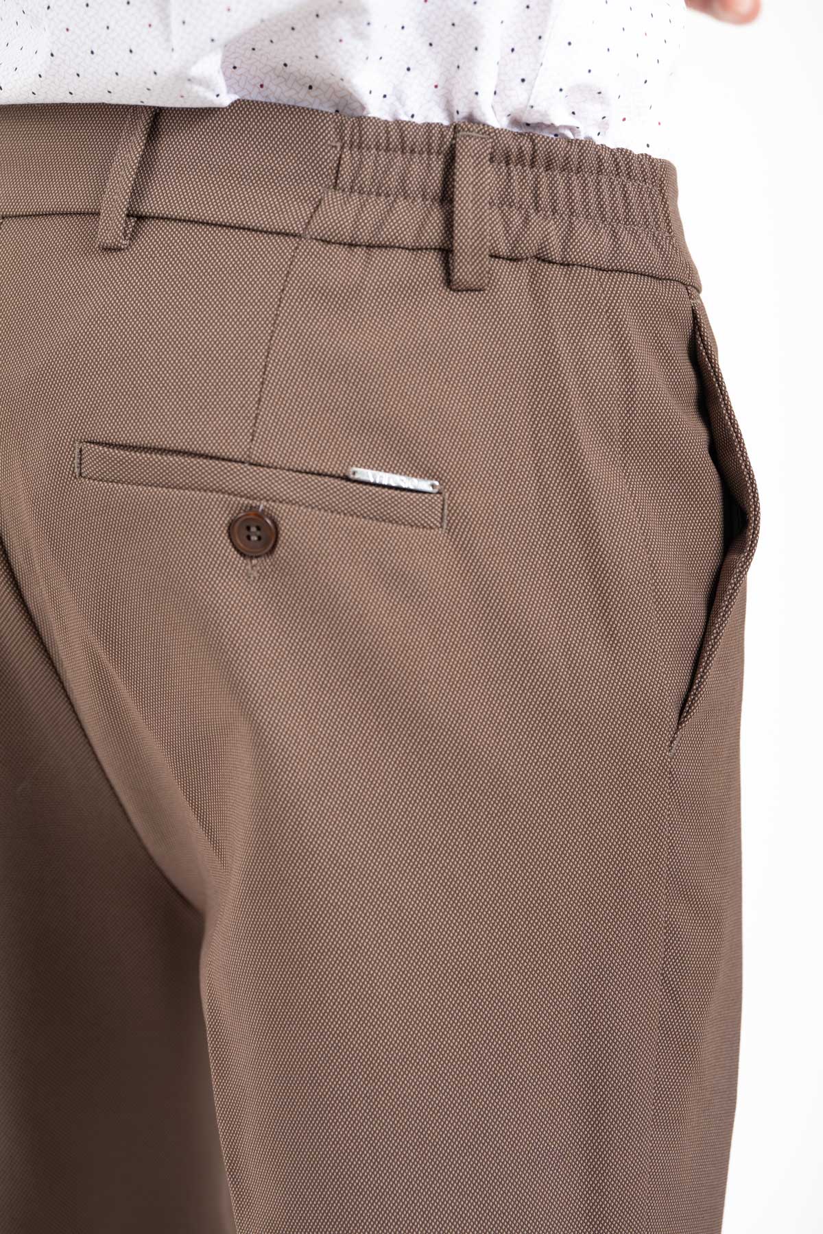 -Παντελόνι σε slim γραμμή. Κλείσιμο με κουμπί και λάστιχο στη μέση για καλύτερη εφαρμογή