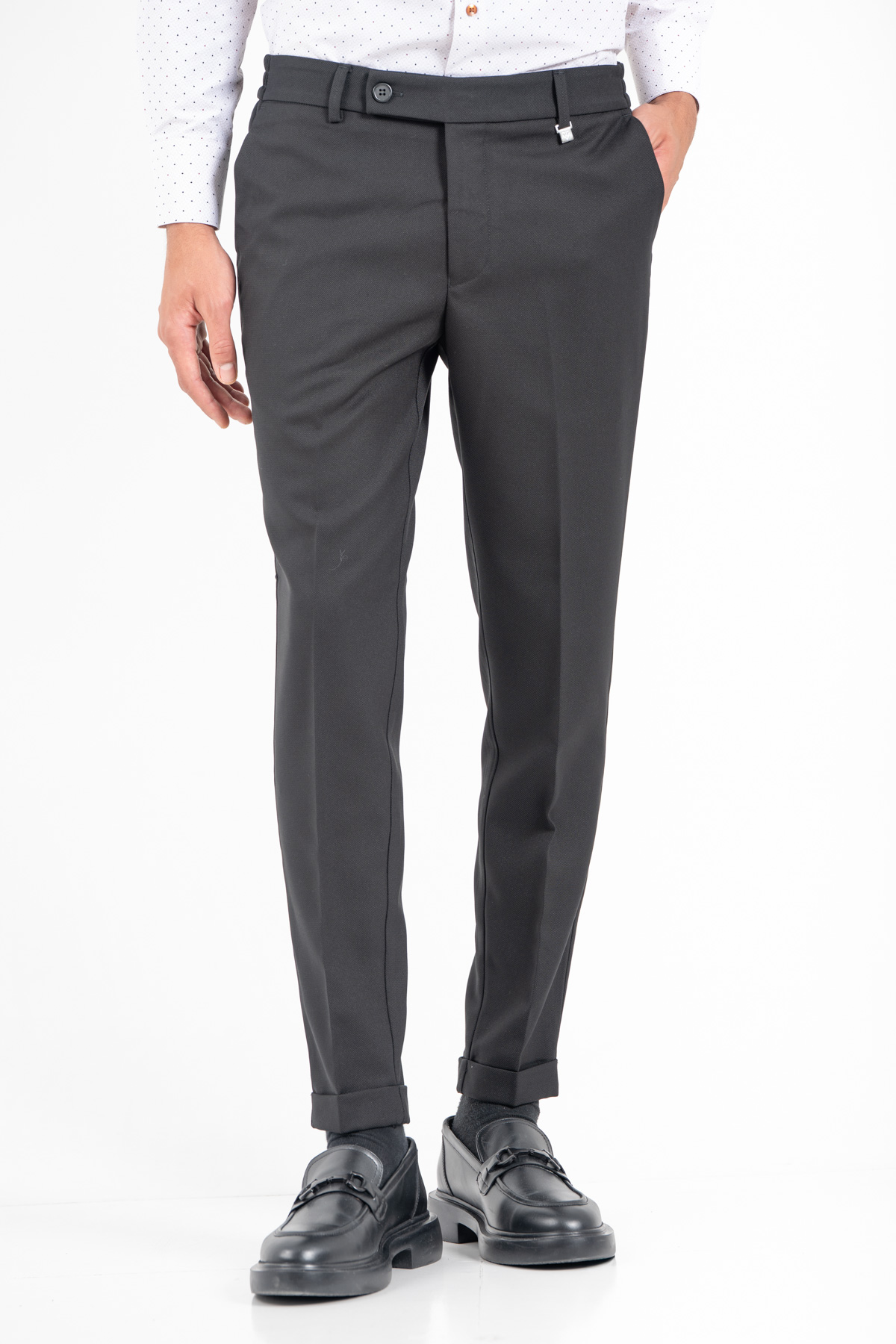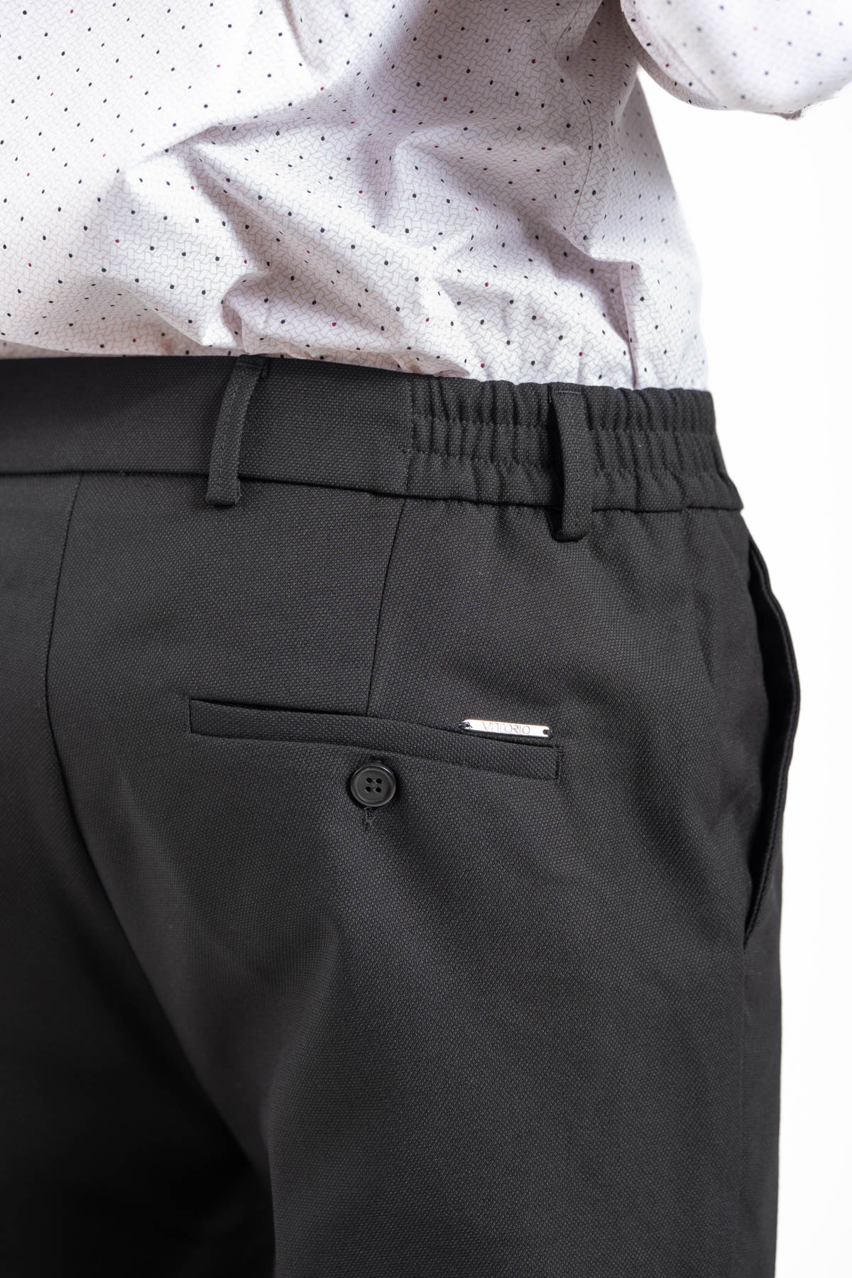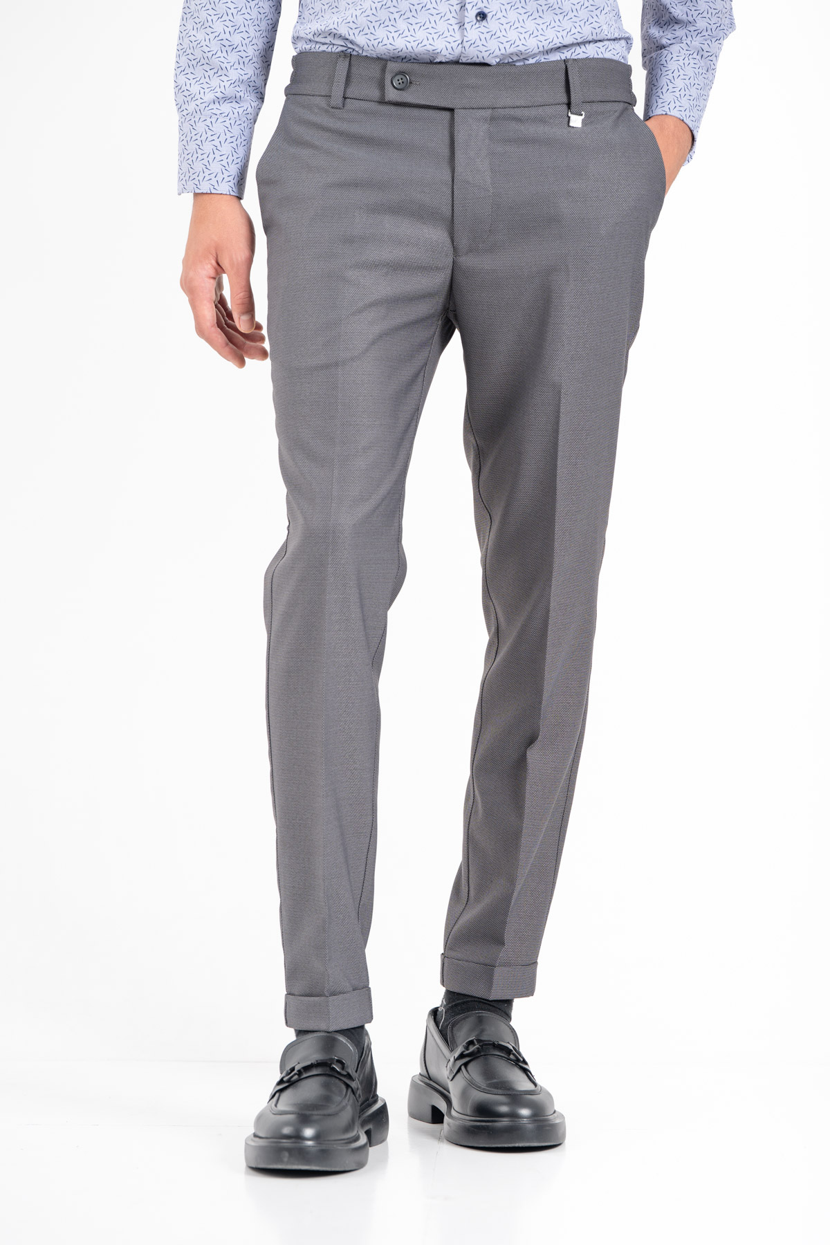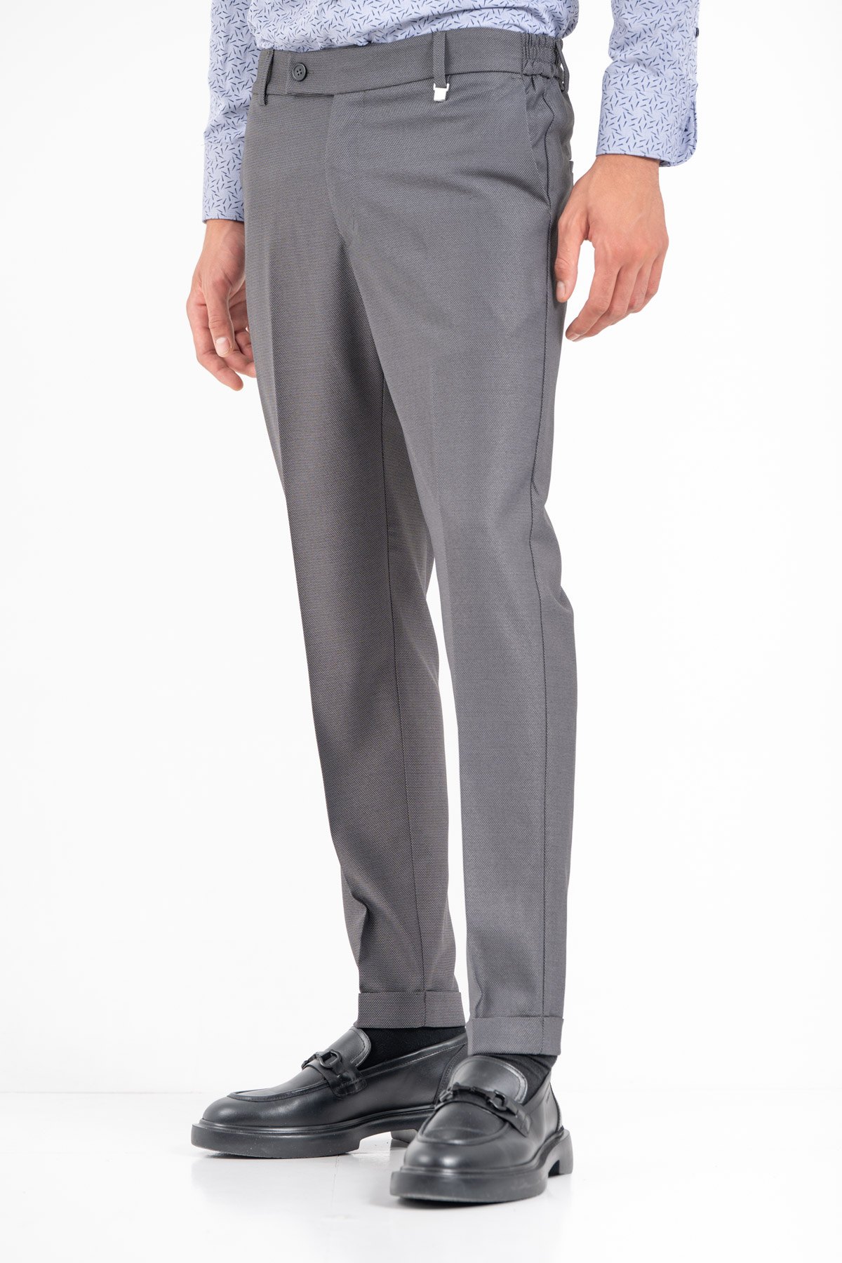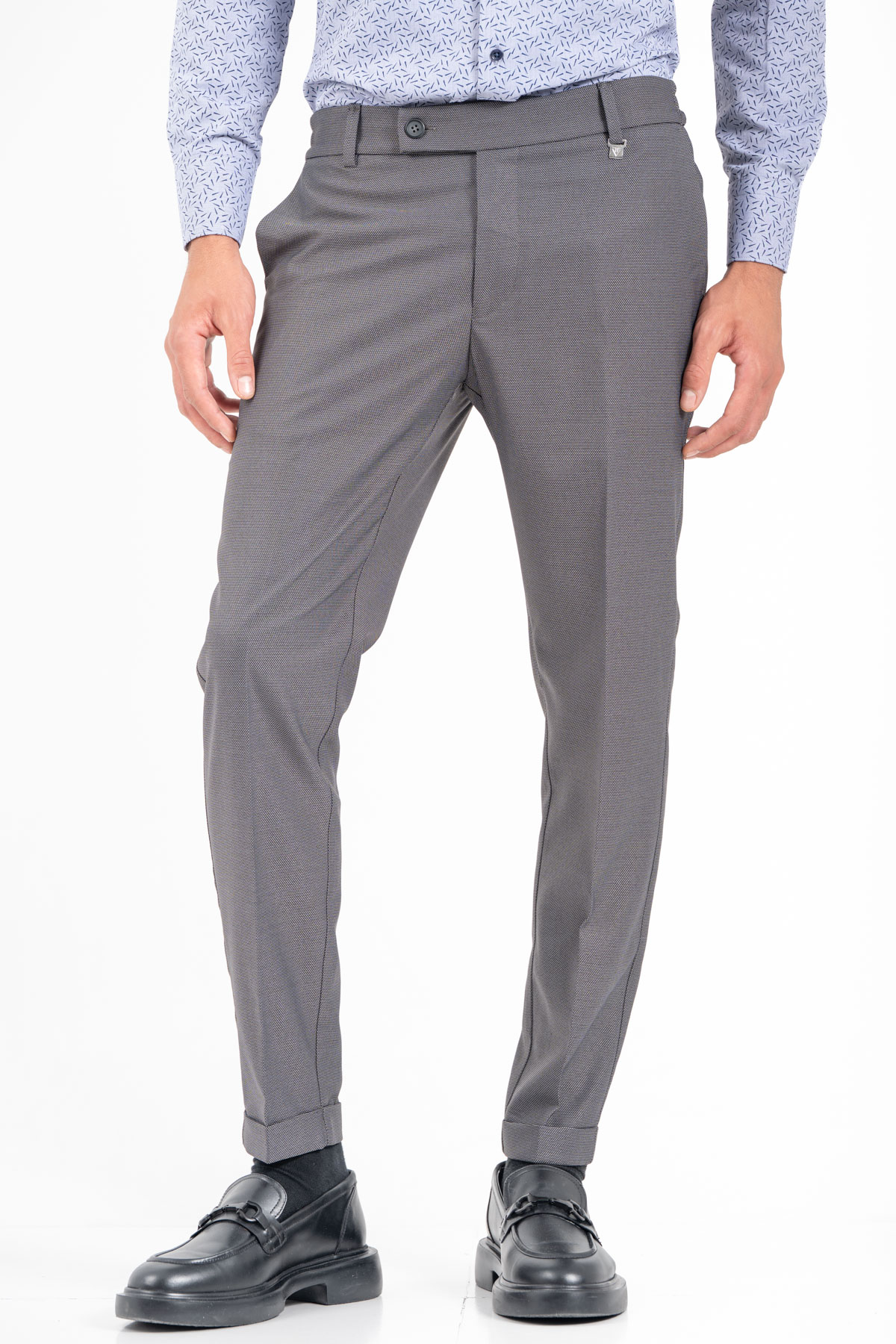-Παντελόνι σε slim γραμμή. Κλείσιμο με κουμπί και λάστιχο στη μέση για καλύτερη εφαρμογή