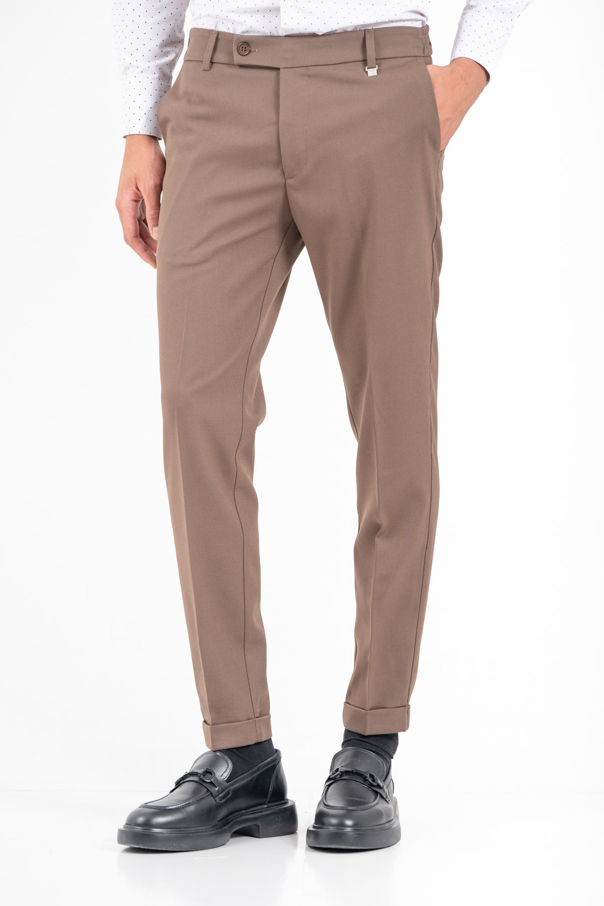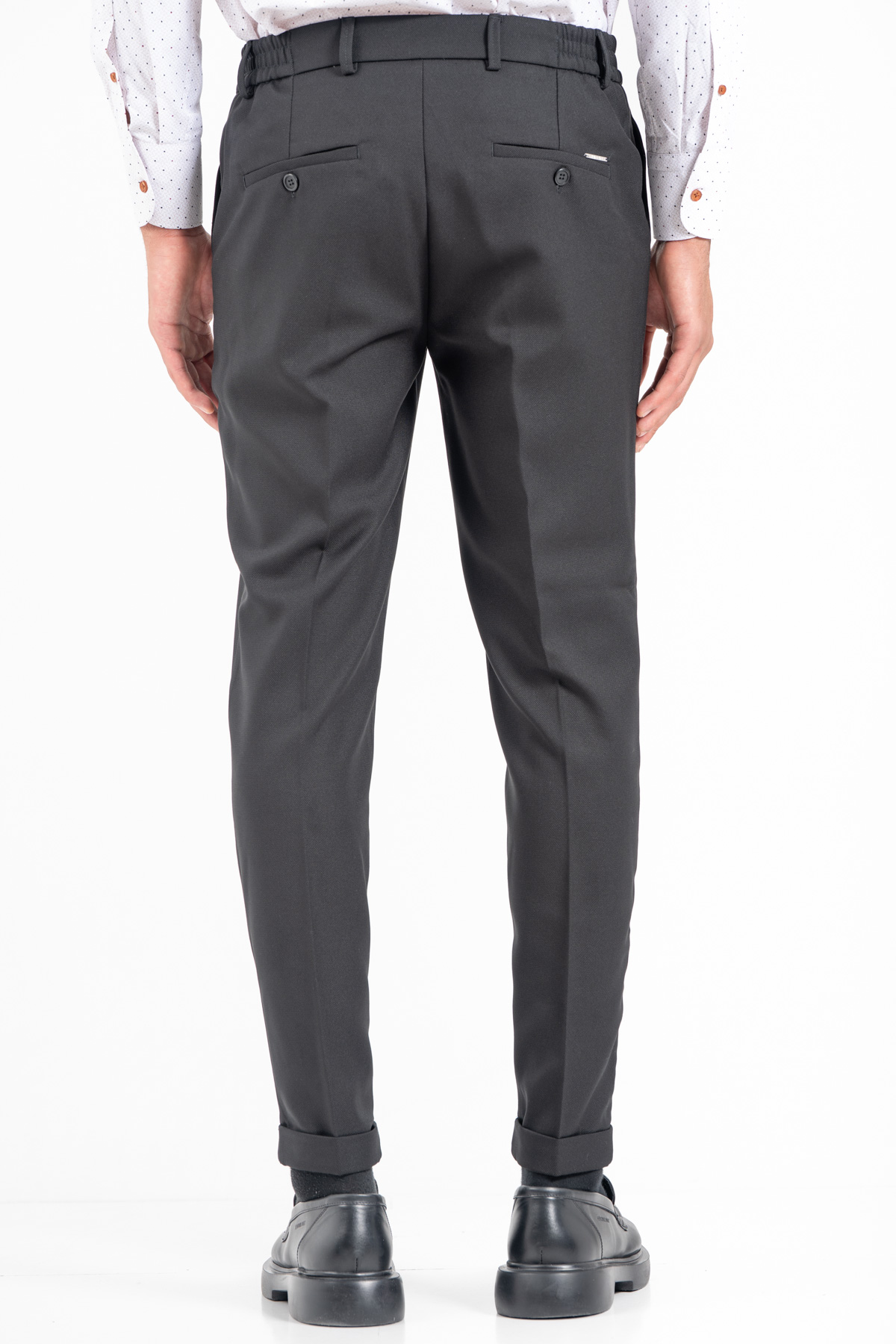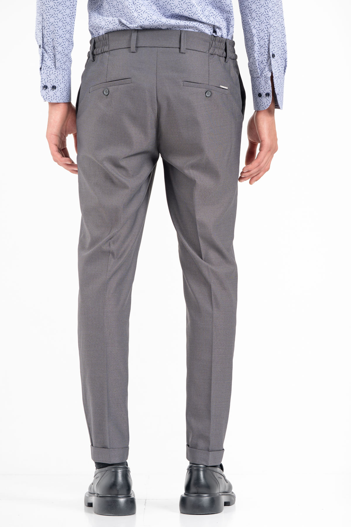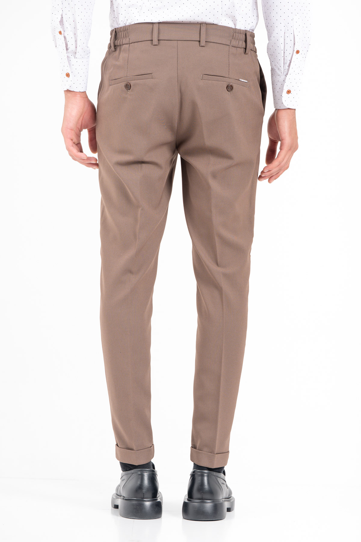 -Παντελόνι σε slim γραμμή. Κλείσιμο με κουμπί και λάστιχο στη μέση για καλύτερη εφαρμογή