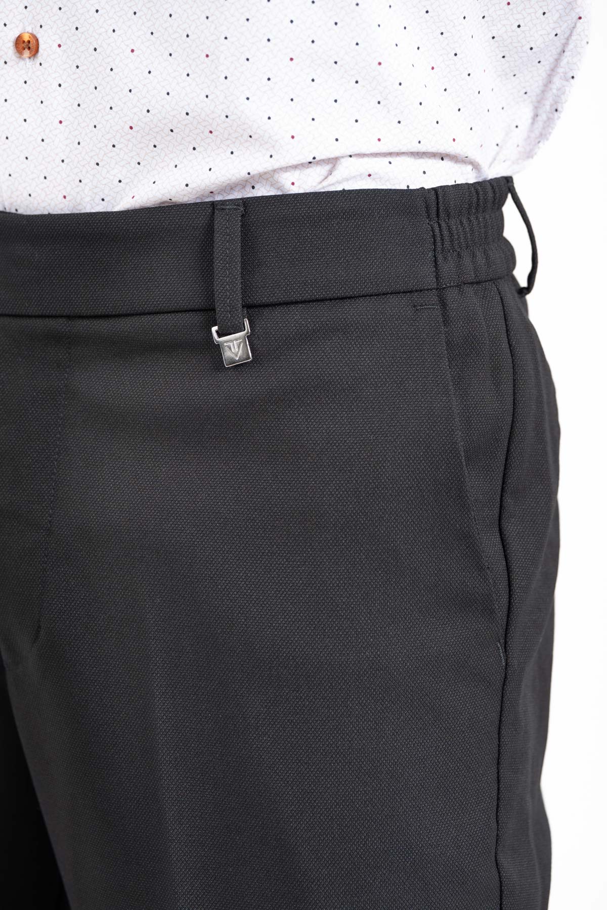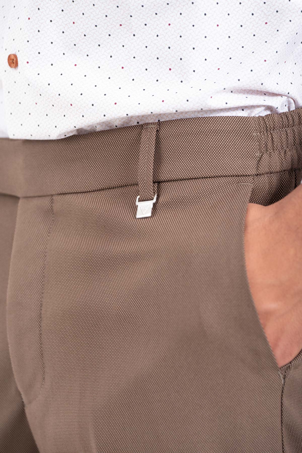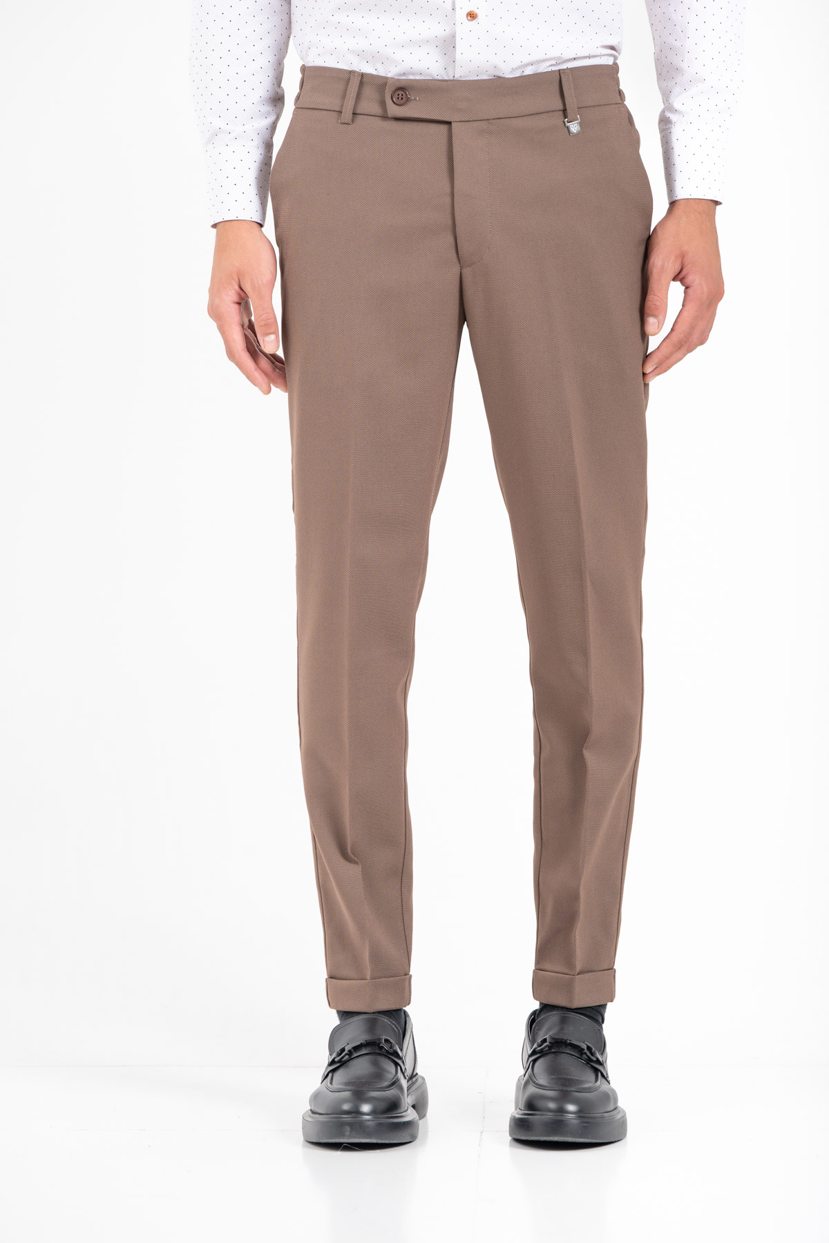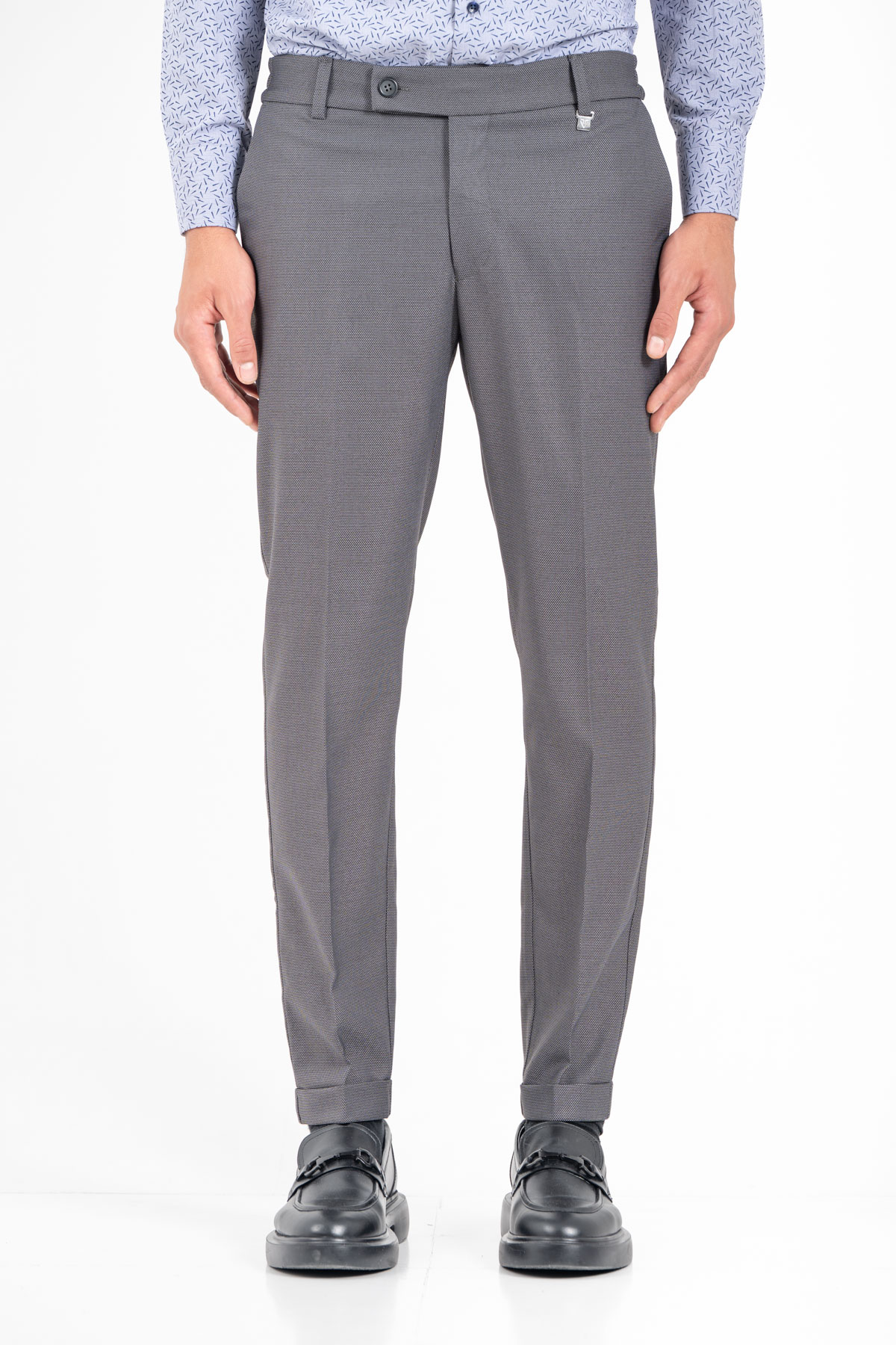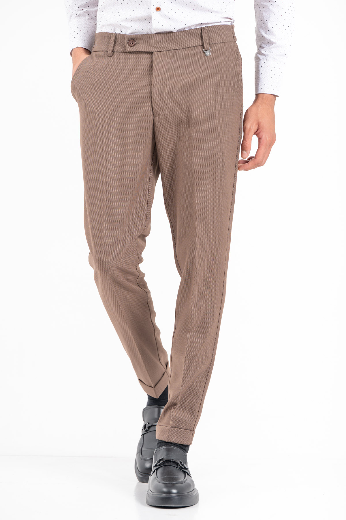 -Παντελόνι σε slim γραμμή. Κλείσιμο με κουμπί και λάστιχο στη μέση για καλύτερη εφαρμογή